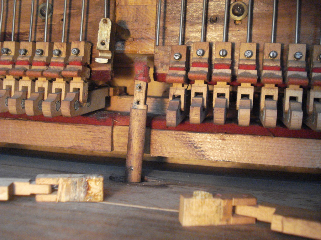 Right Pic – Here’s the two flanges…the view your looking at is where the action(pictured above) normally resides…basically we’re deep inside the piano