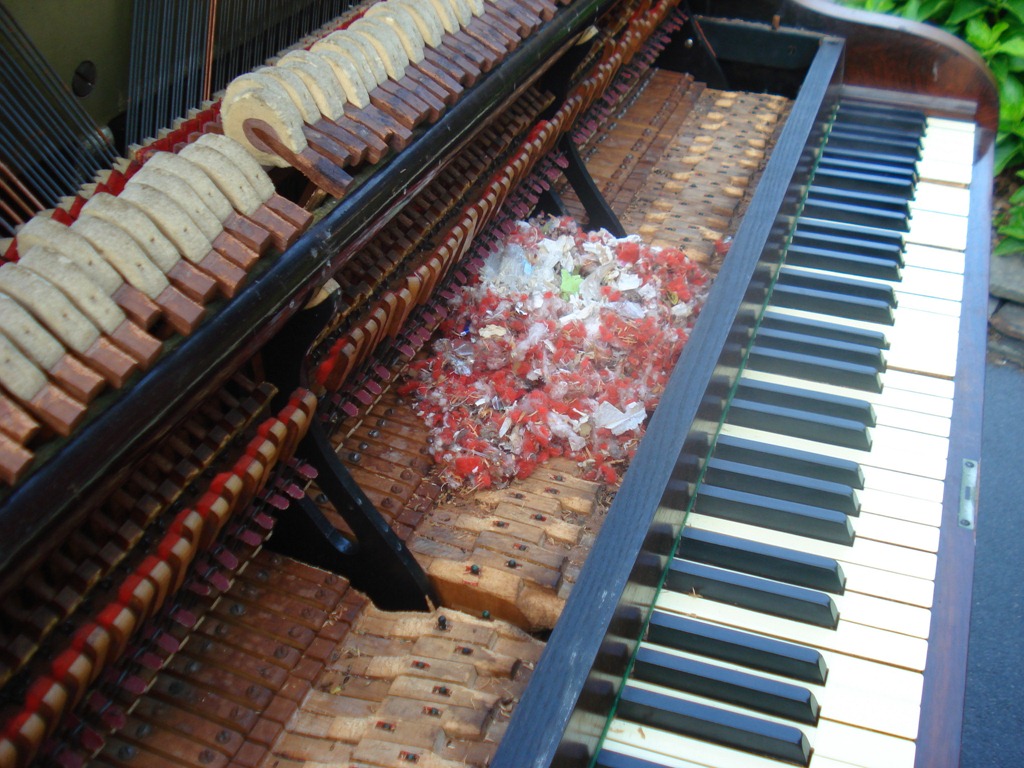 Family of mice lived in this piano for several years. As you will see mice can do an extreme amount of damage to a piano.