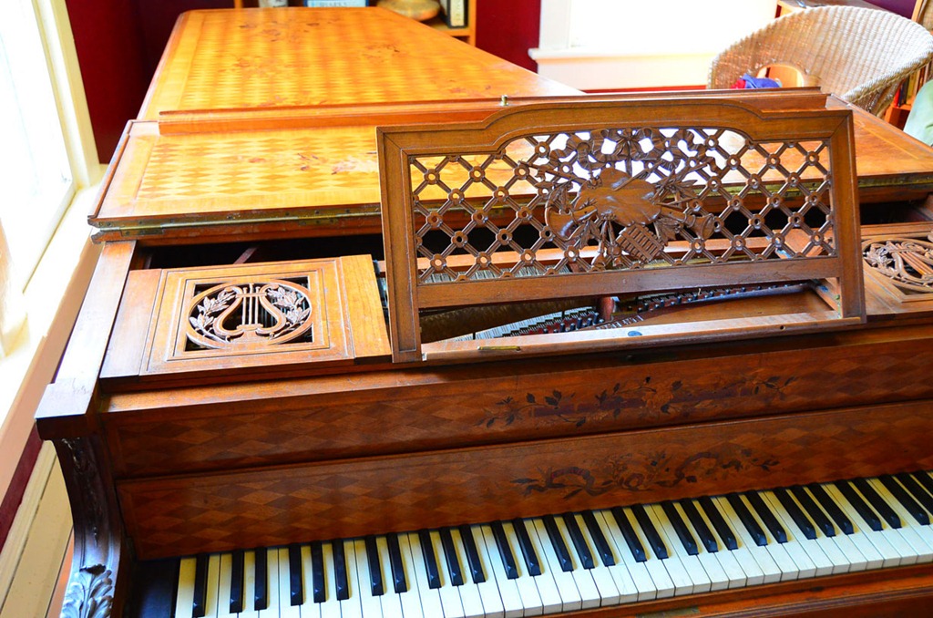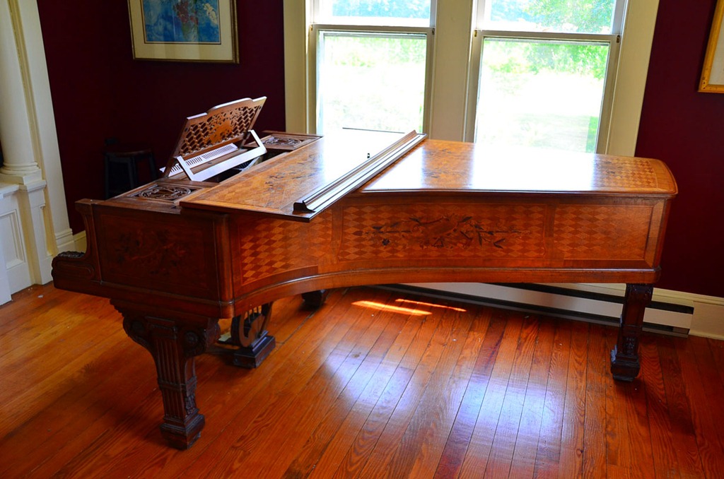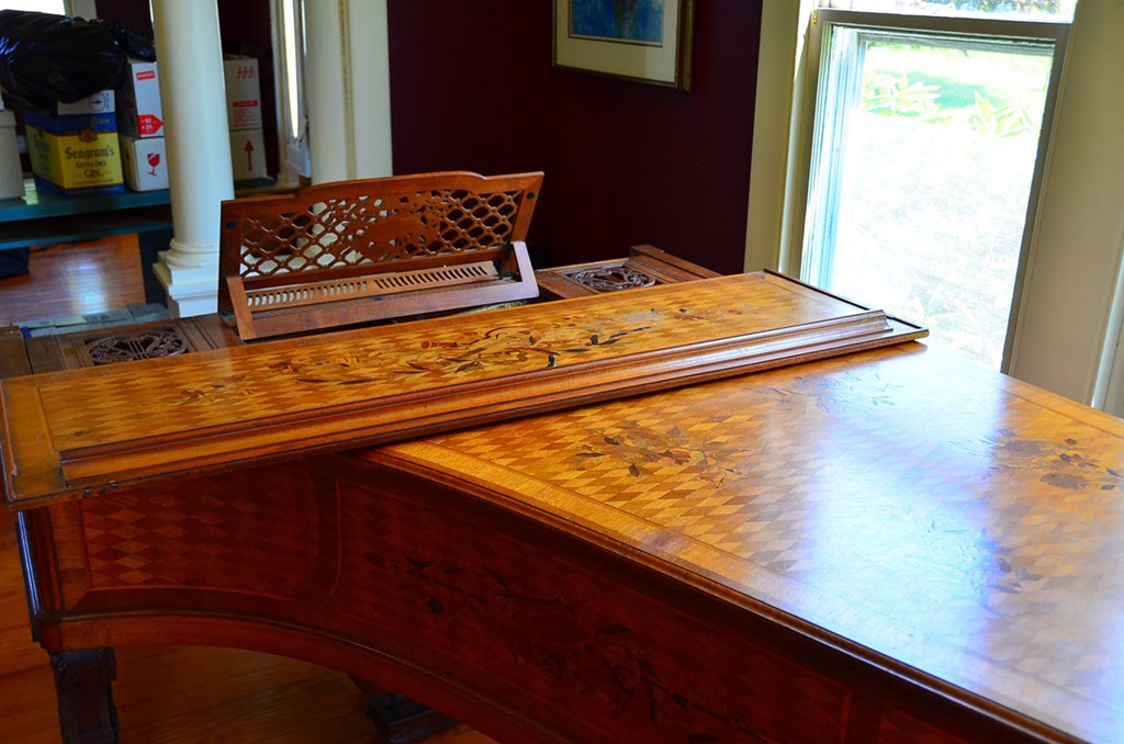 We (Salisbury Music & Instrument Repair) moved this piano for the client back in the summer. A bit later I returned to tune it and do some minor repair/action work. It is one of the most exquisite pianos I have ever seen(or worked on). Heavily inlaid, it truly is a work of art. To see pictures of the piano move Go Here.
