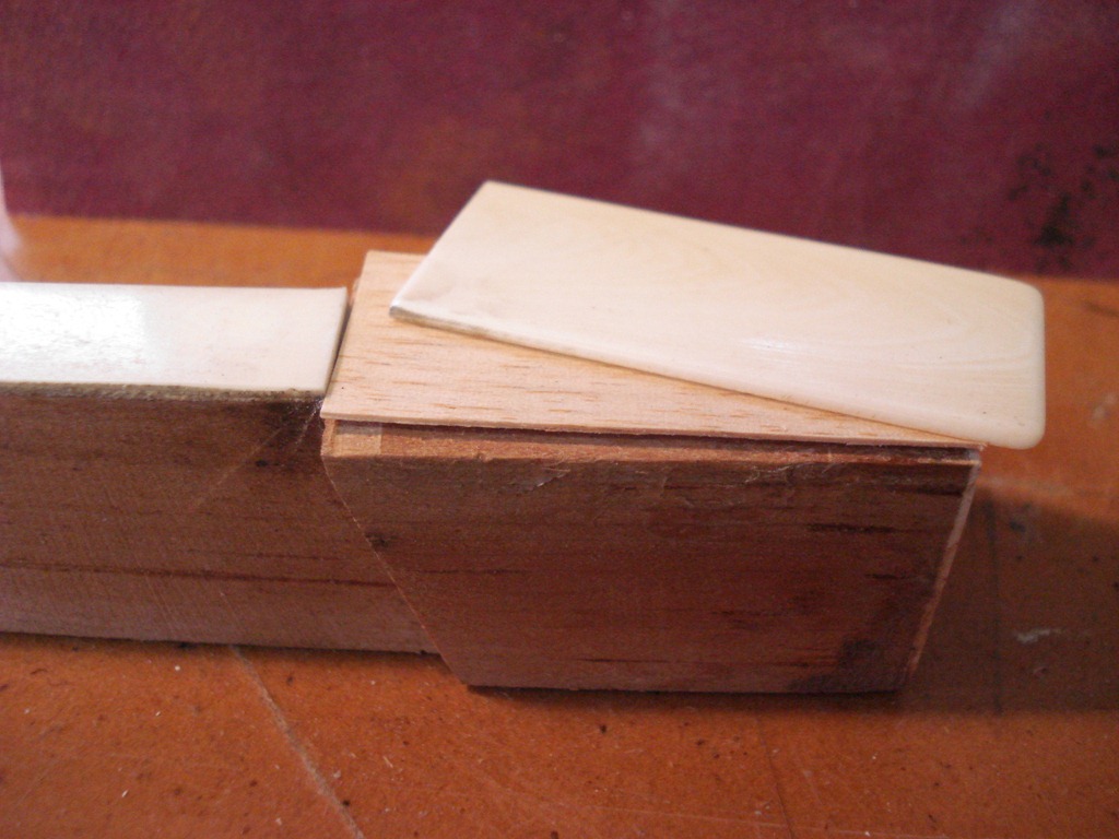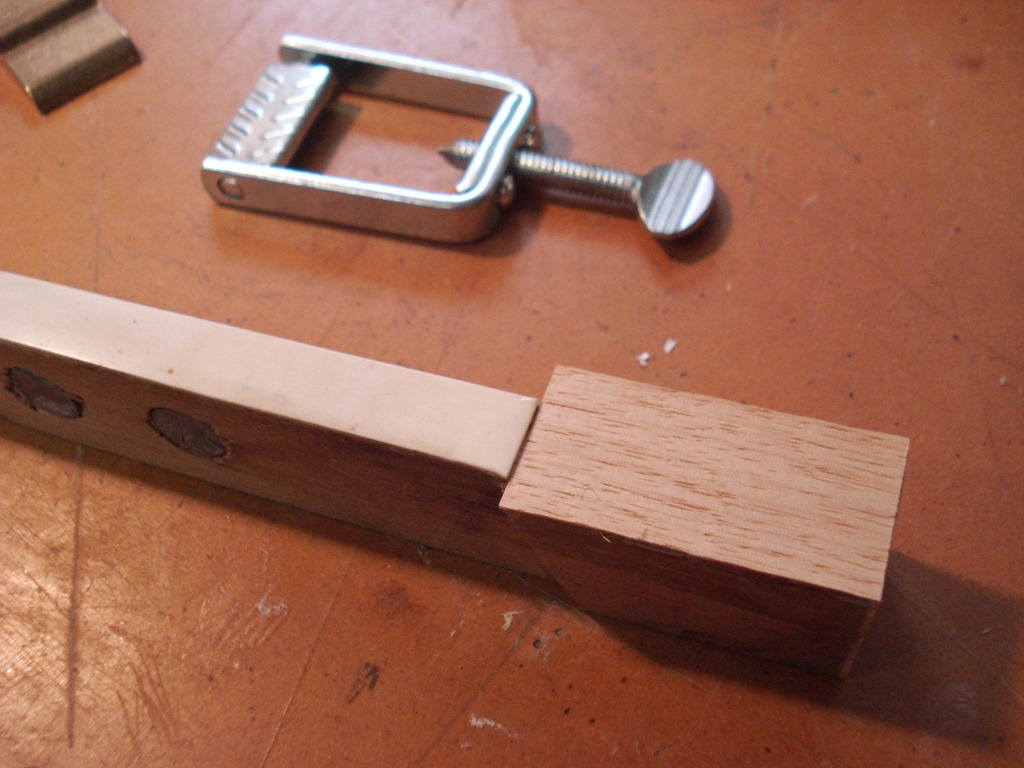 Right Pic – Going to dowel the pedal support holes on the back. Notice the plastic screw expanders in the holes on the near side. Interesting idea, but NO, gonna dowel those holes, then re-drill