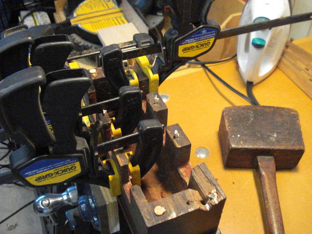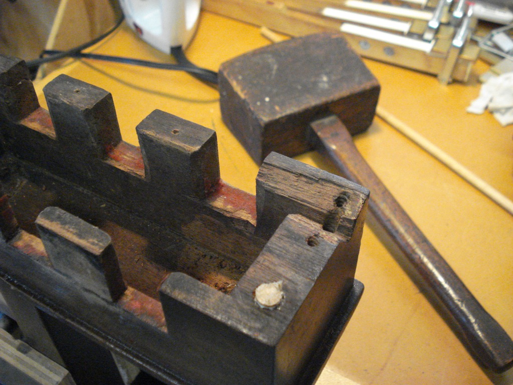 Left Pic – Dowels chiseled off, ready for drilling