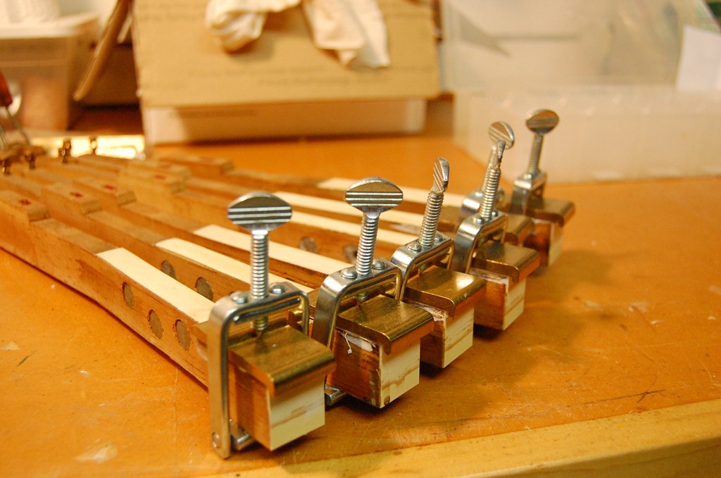 In the picture to the right I’m repairing the trapwork(pedal assembly) to a grand piano